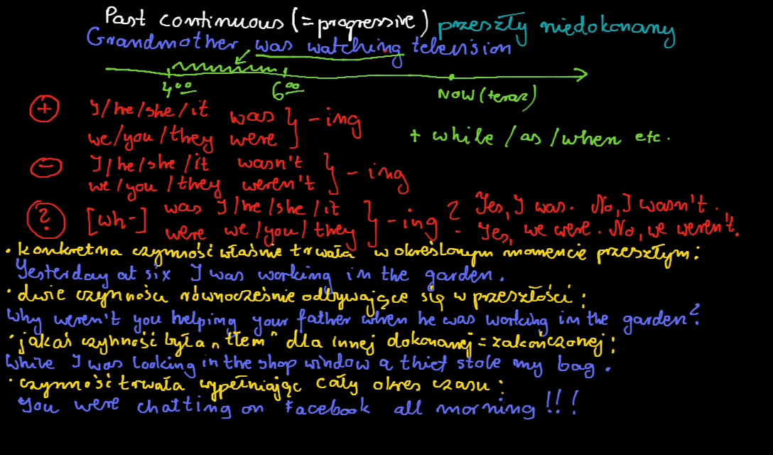 Przyjrzyj się jeszcze raz jak wygląda prawidłowo utworzona forma past continuous. A następnie przejdź do ćwiczeń.