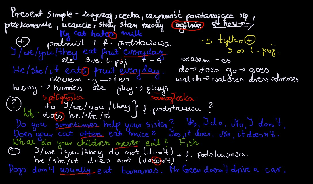Przyjrzyj się jeszcze raz jak tworzymy present simple, a następnie wykonaj ćwiczenia w quizie.